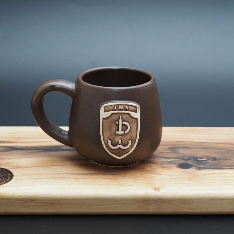 Herb, logo firmowe, znaczek z dowolną grafiką czy tekstem, na zrobionej przez nas etykiecie ceramicznej wykonanej z gliny świetnie się prezentuje.
